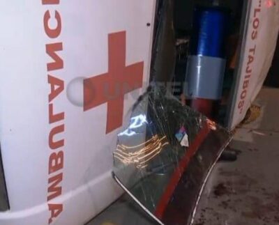 Ambulancia con embarazada vuelca tras choque con camioneta en carretera local