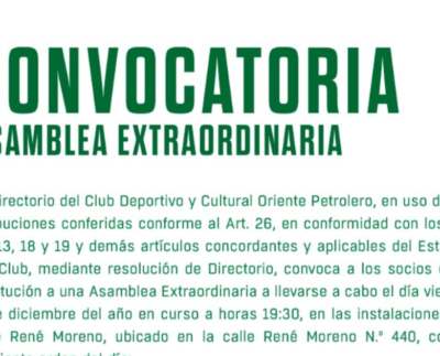 Oriente Petrolero convoca a Asamblea Extraordinaria en Santa Cruz