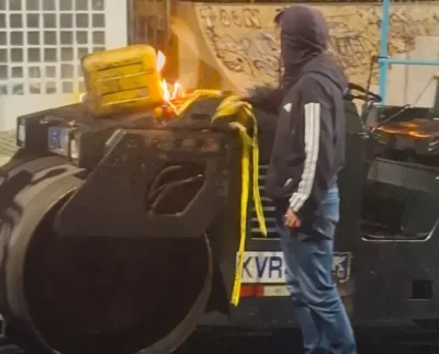 Hombre en La Paz intenta incendiar maquinaria de asfalto y es detenido por guardias municipales
