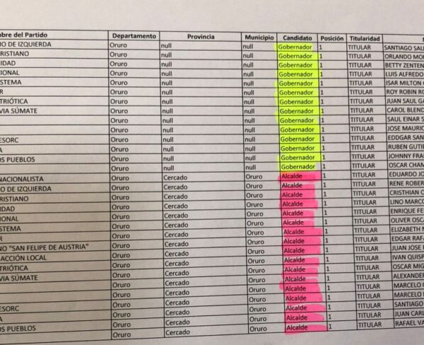 Oruro registra récord de 14 candidatos a Gobernador y 17 a Alcaldía en elecciones