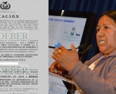 Fiscalía cita a Nemesia Achacollo en La Paz por segundo caso del Fondo Indígena
