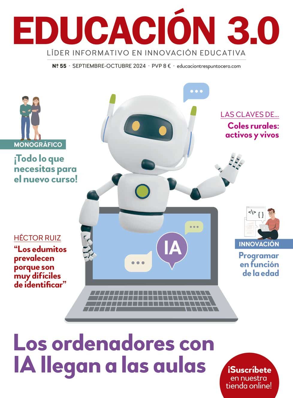 Ya está a la venta en nuestra tienda online el último número de la revista EDUCACIÓN 3.0 impresa, correspondiente a septiembre-octubre 2024. Para garantizar la recepción de la revista es necesario suscribirse: puedes hacerlo como centro o particular a través de nuestra tienda online. ¡Aprovecha la oferta de suscripción del 20% de descuento válida hasta el 30 de septiembre con el cupón EDUCACION55 !